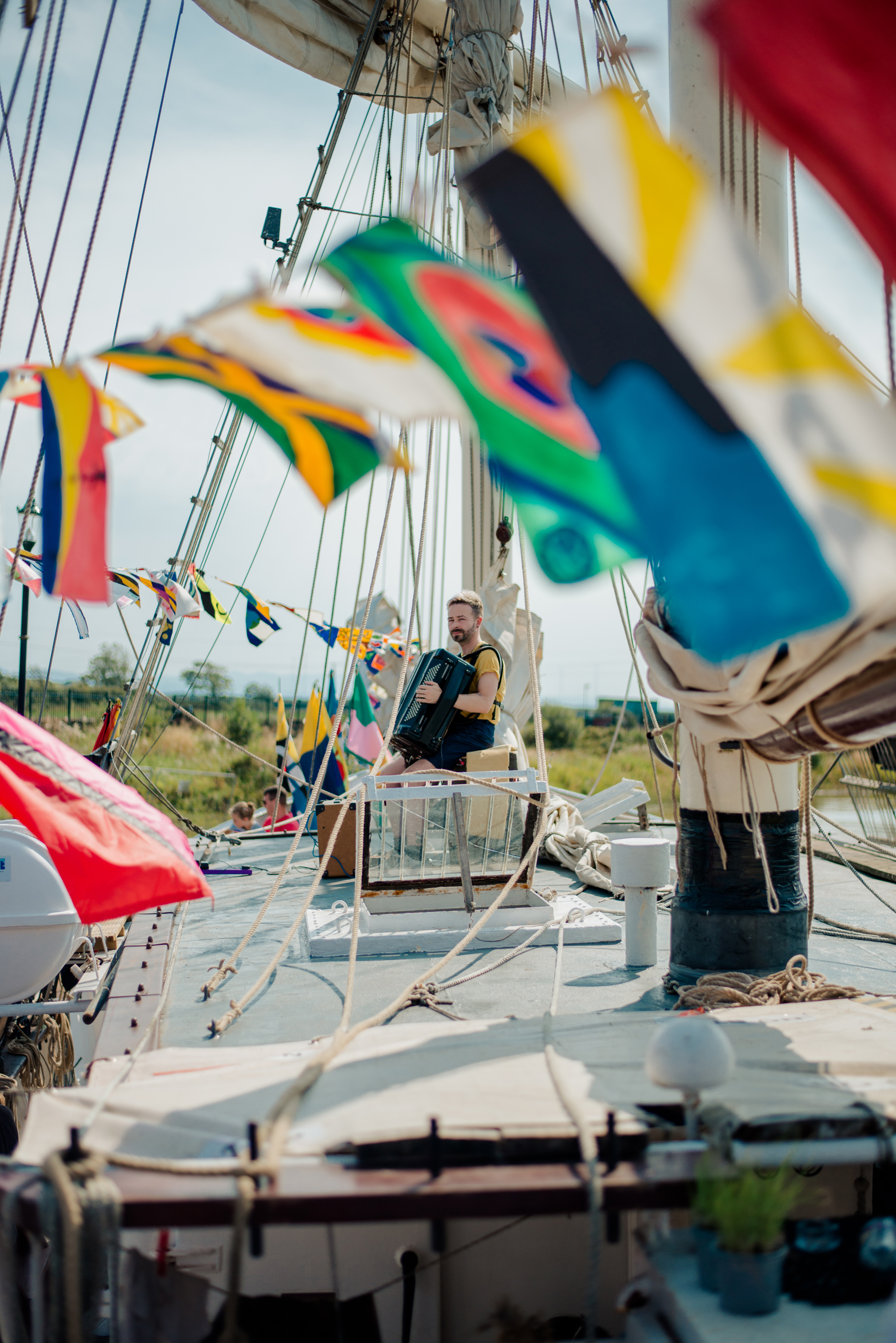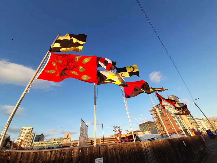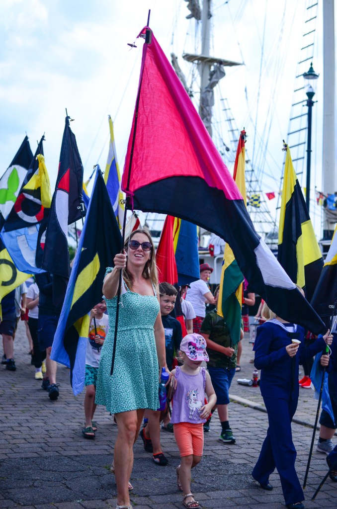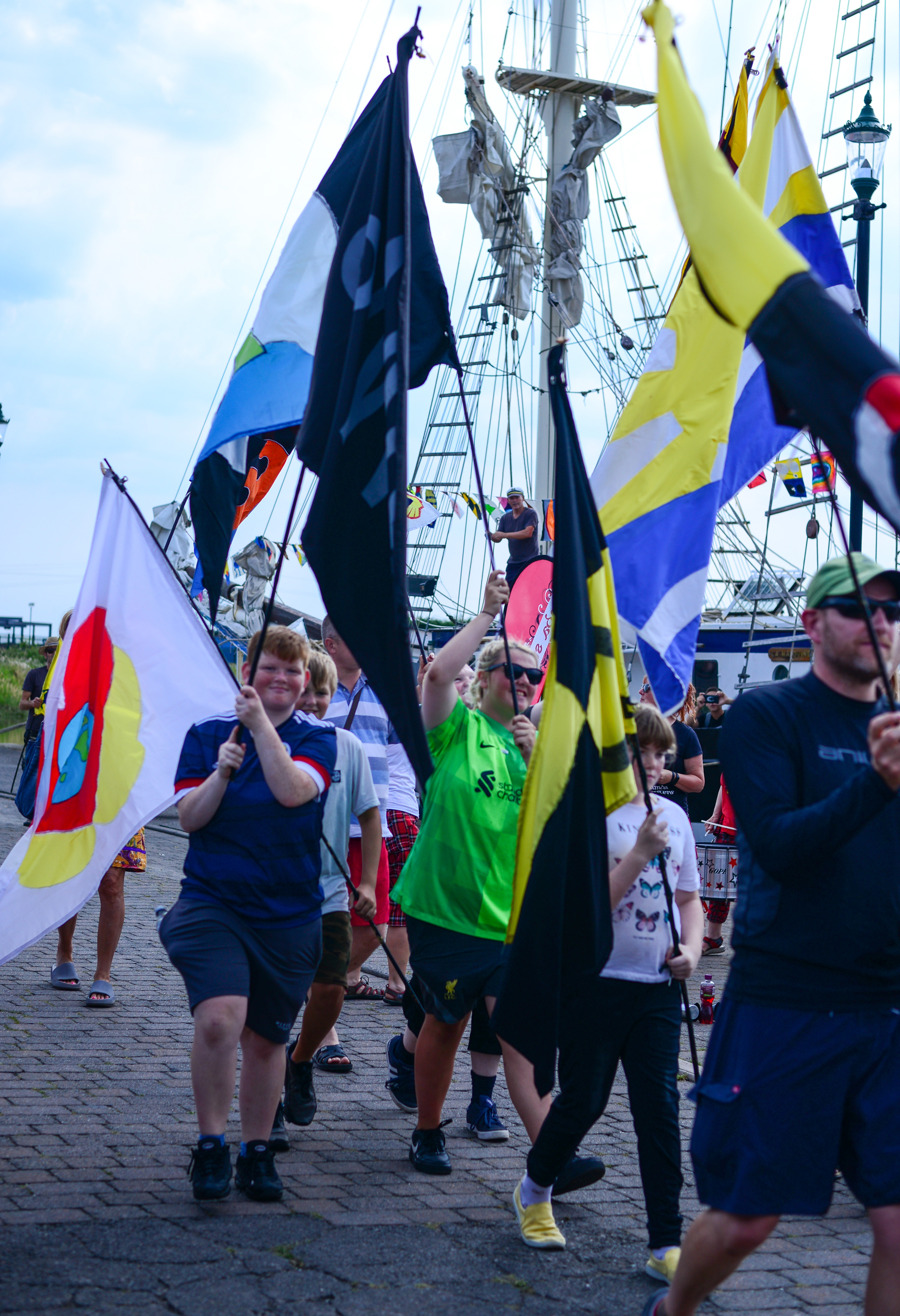 The flags carry a spectacular and powerful environmental message when flown all together on the tall ship and during the journey along the coast, people gathered for event days and ‘Dressing of the Ship’ celebrations where the flags were hoisted into the ship’s rigging along with a spectacular processions, food and art events and live music on the quaysides.