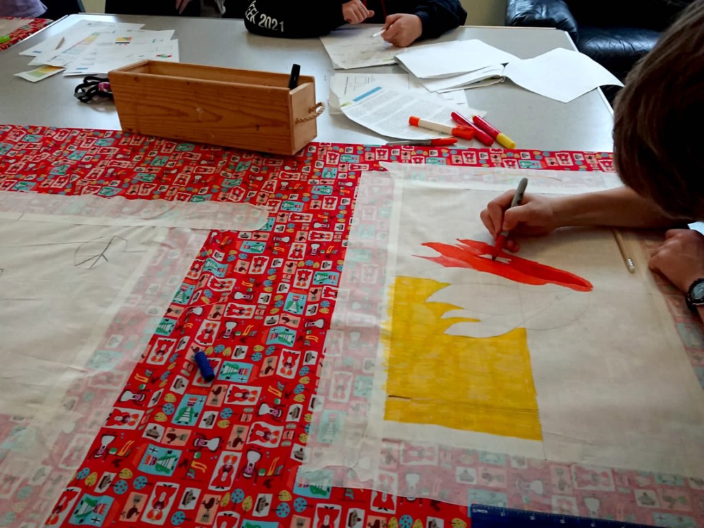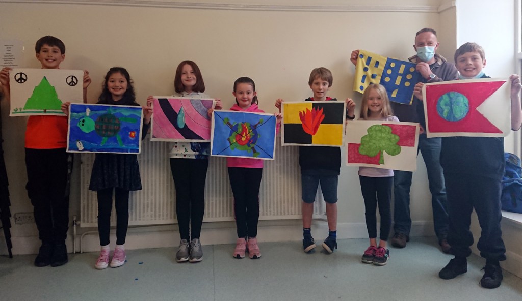 Below: Flag design and making workshops at Auchencairn and Dalbeattie.