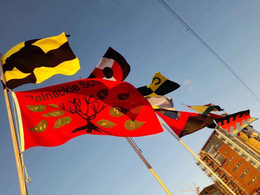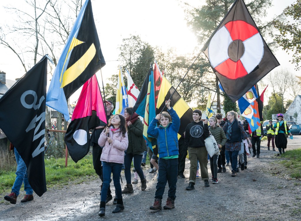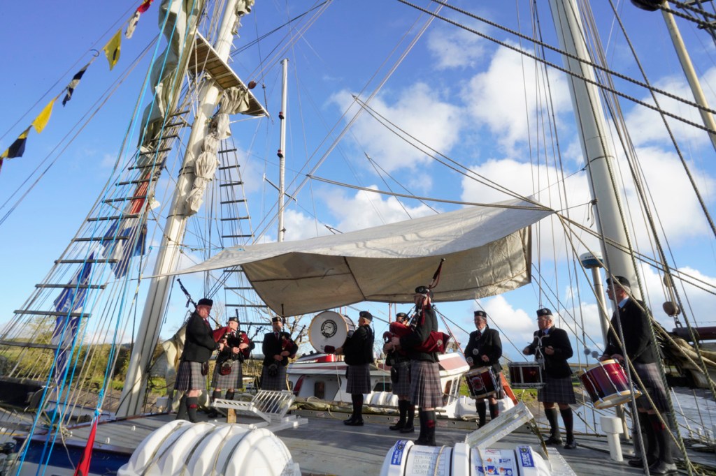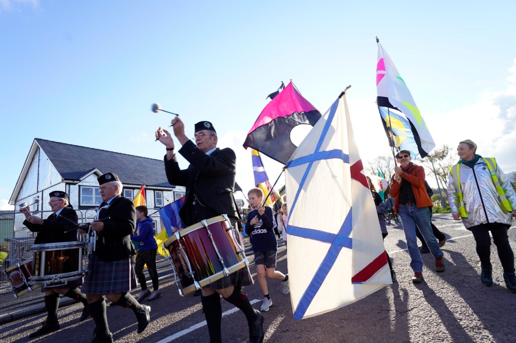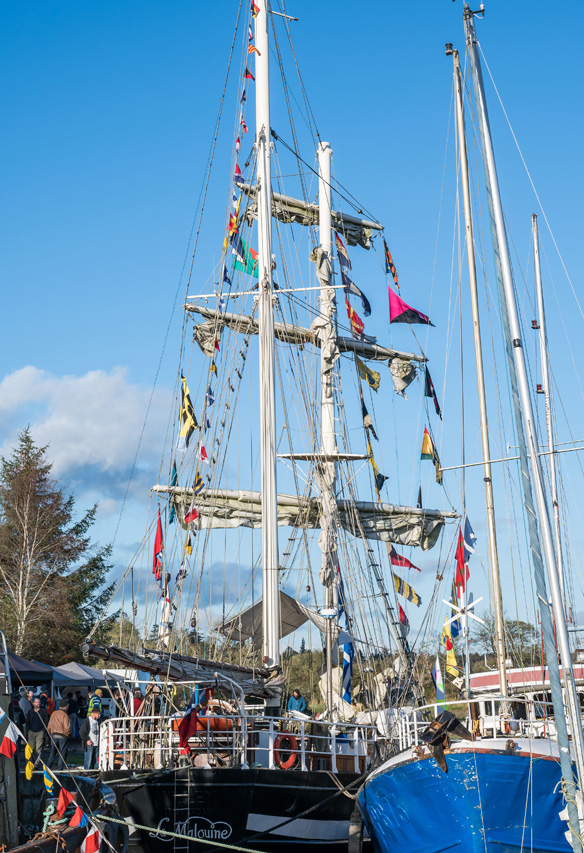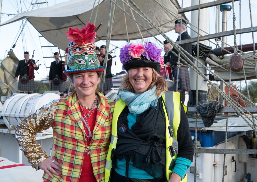 A journey of discovery and celebration. Local artists hosted a series of workshops for communities to design and make novel maritime flags. Flags are a traditional way of signalling at sea and these community made flags from upcycled fabric were designed to express and signal environmental concerns and future hopes. The event day was at Palnackie October 20th 2021, where hundreds of people gathered for a ‘Dressing of the Ship’ celebration where the flags were hoisted into the ship’s rigging, along with a spectacular procession, food and art event and live music on the quayside. When flown all together on the tall ship, the flags carried a spectacular and powerful environmental message. The flags then headed off to Glasgow to be flown at COP26 from 1-12 Nov 2021, taking messages from Dumfries and Galloway to world leaders.