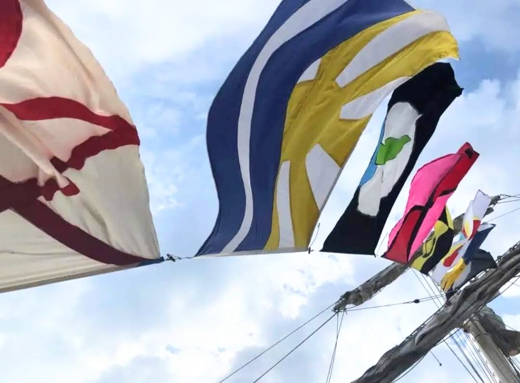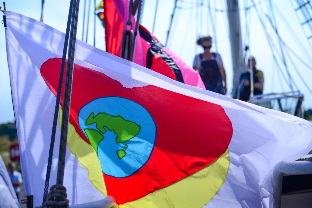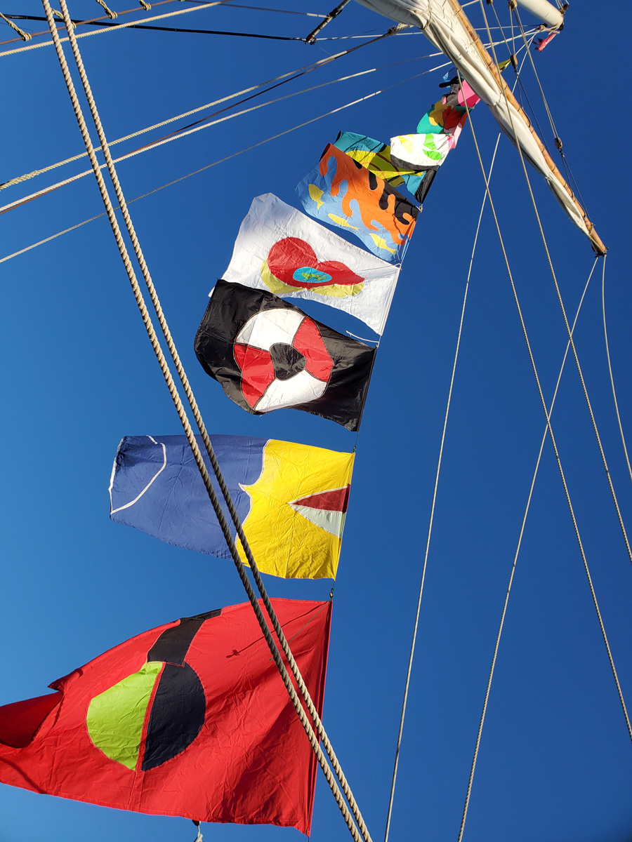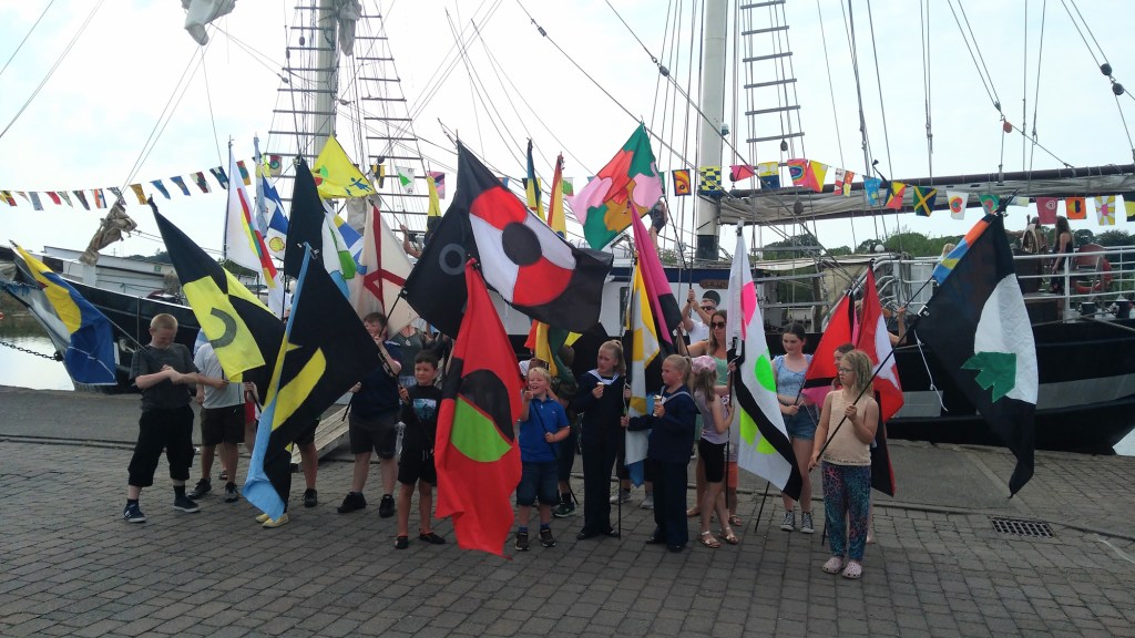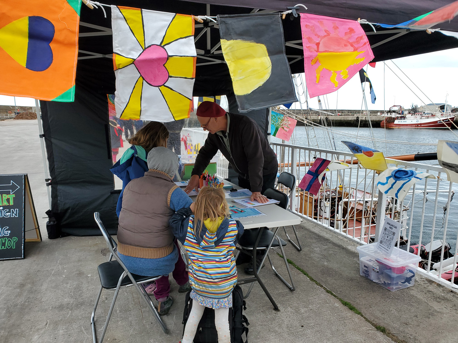In September there were flag making workshops in Buckie during the Findhorn Bay Arts Festival and Flags flew on theTall Ship, The Lady of Avenel.
