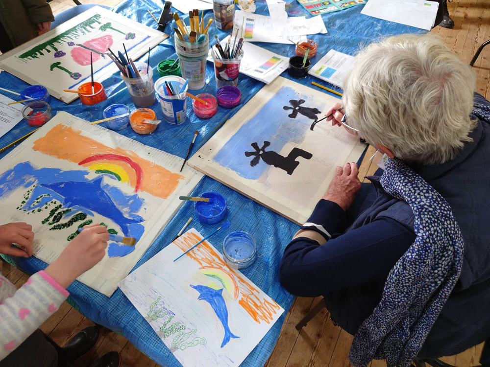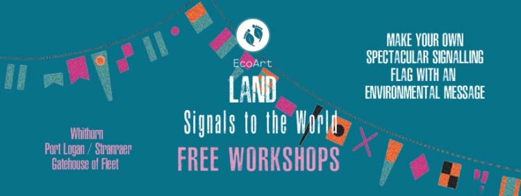 Continuing to journey along the Solway coast, for the third year running, ‘LAND’ toured coastal towns in Dumfries and Galloway collecting signalling flags as it went. Prior to the events, local artists hosted a series of open workshops in Gatehouse of Fleet, Whithorn, Port Logan and Stranraer where participants designed and made flags that carried environmental messages.