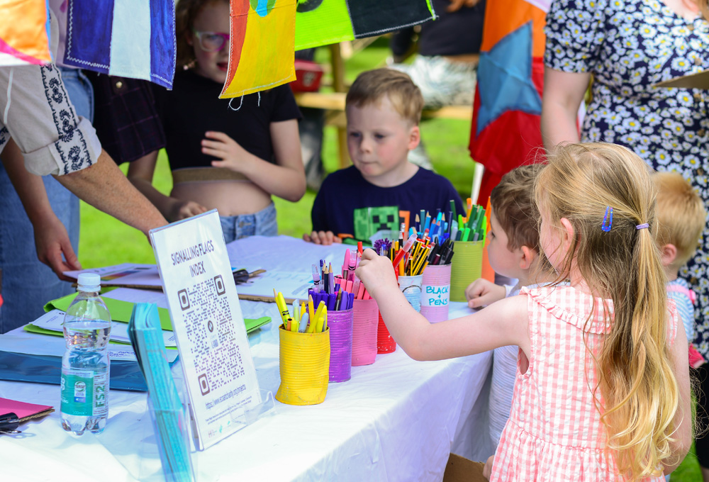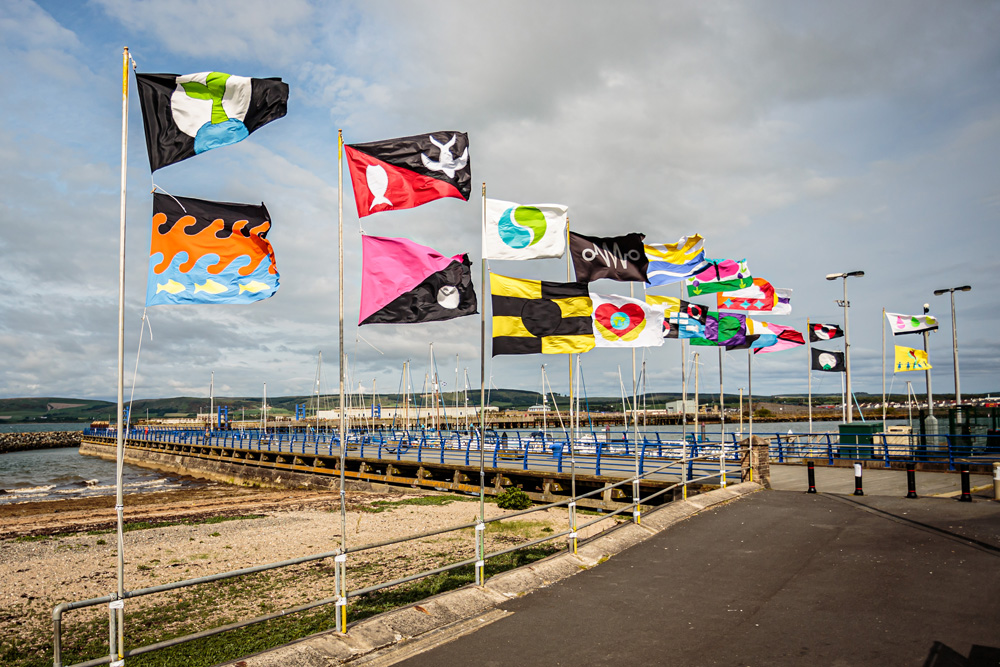 The flags are added to the growing collection which are flown at events in a colourful, visually stunning display. These flags and designs are archived to record this pivotal time in history. Inspired by the International Maritime Signals Code, the flags are a creative way of signalling the feelings of communities concerning the huge environmental challenges facing us all as well as their hopes for the future.
